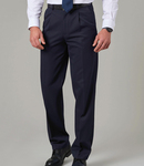 65% polyester/35% viscose. In transition to using recycled polyester. Classic fit. Single pleat. Belt loops. Zip fly with button over. Two side pockets. Rear pocket. Machine washable. Co-ordinates with BK300, BK301 and BK320.